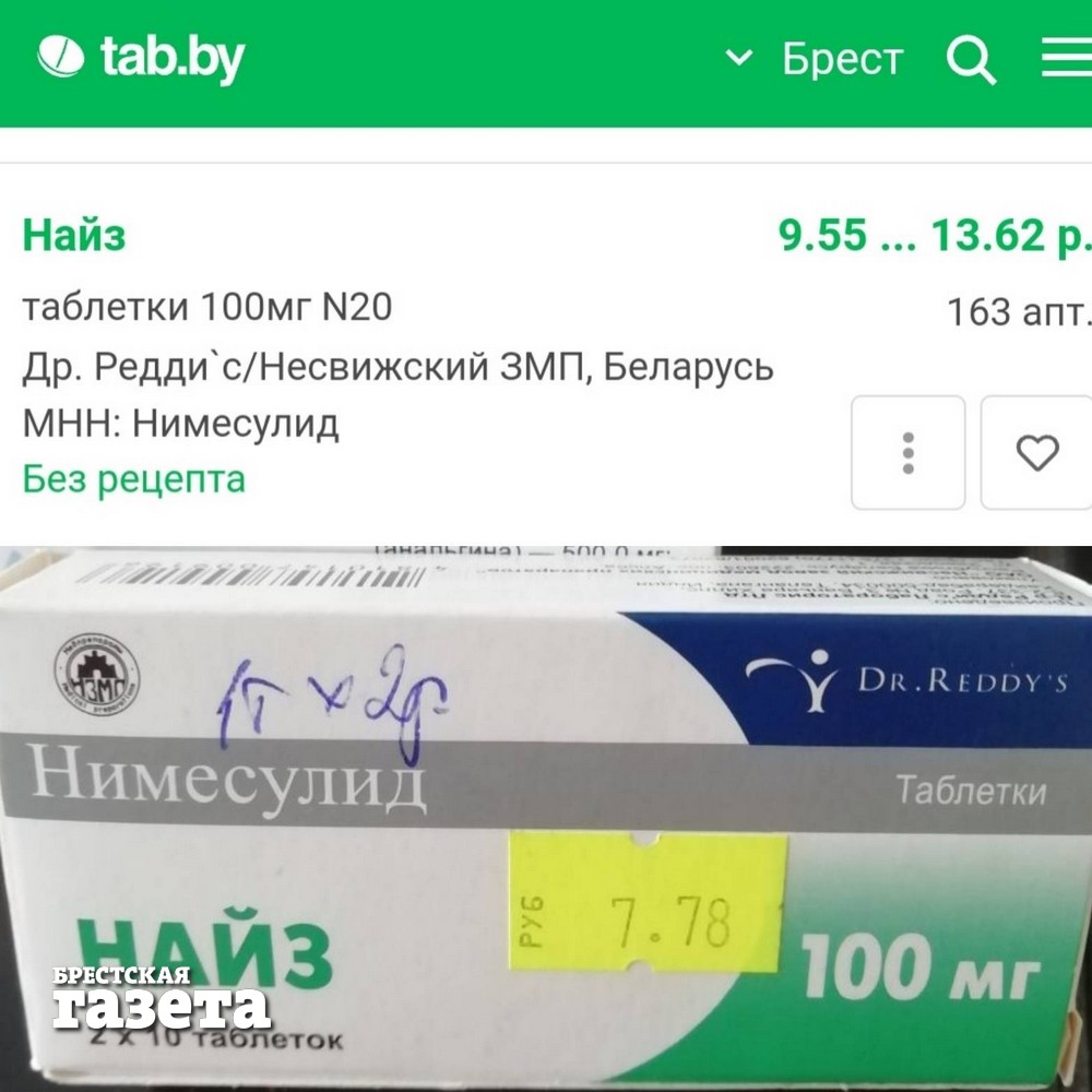 Интересная ситуация с препаратами беларуского производства. Например, старый добрый «Анальгин» как был в районе 1,50, так и остался, а вот «Найз» вырос цене. И заметно: вместо 7,78 сегодня ценник доходит до 13,62 рублей.