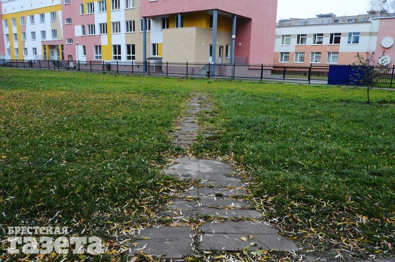 «Детскую площадку нам частично восстановили. Поставили песочницу, качели и три скамейки. Высадили деревья, восстановили дорожки. Но земля испорчена после строительства, а землю они не подсыпали нигде, поэтому трава, которую они пытались посеять, вряд ли будет расти», — рассказала корреспонденту «БГ» Светлана Стасилович, жительница дома №28Д.