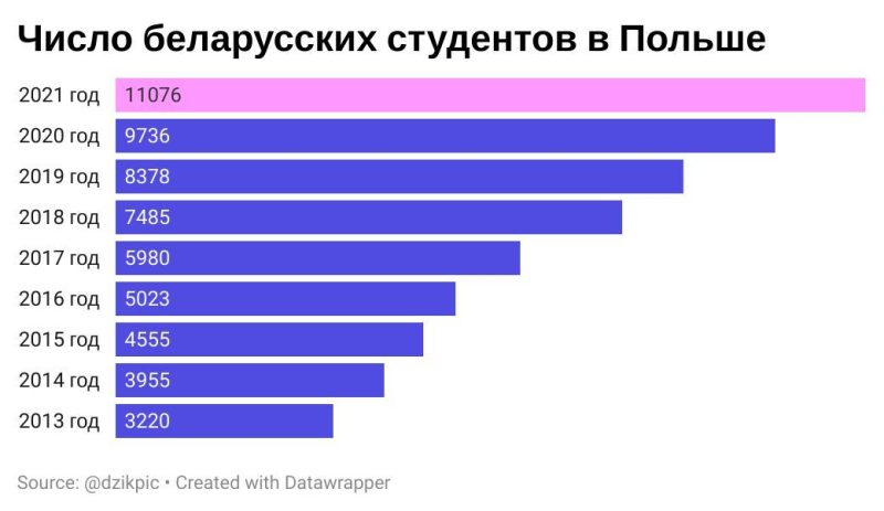 «Но это не значит, что польская сторона будет отказываться от того, чтобы беларуские студенты ехали к ней учиться. И тут я люблю говорить цифрами статистики», — отмечает преподаватель.