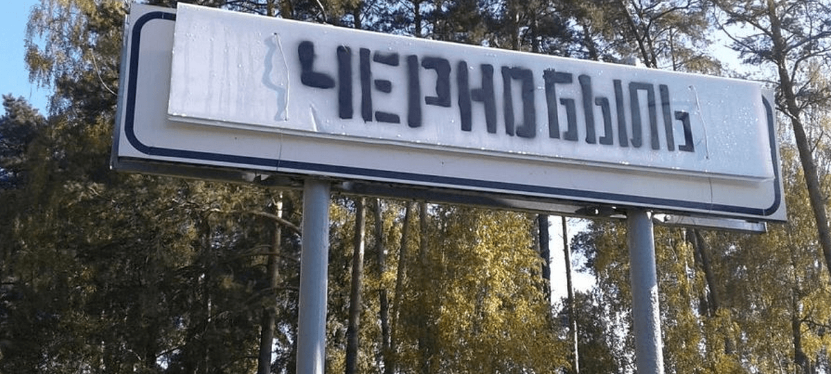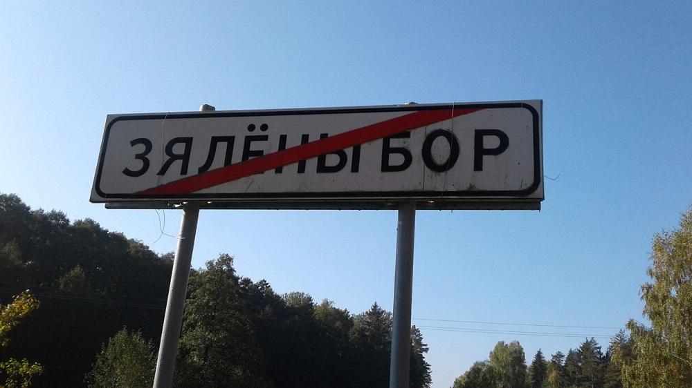На въездной знак «Зялёны Бор» прикрепили проволокой табличку с надписью «Чернобыль». Снимок был сделан днем 13 октября, сообщает «Першы рэгіён».