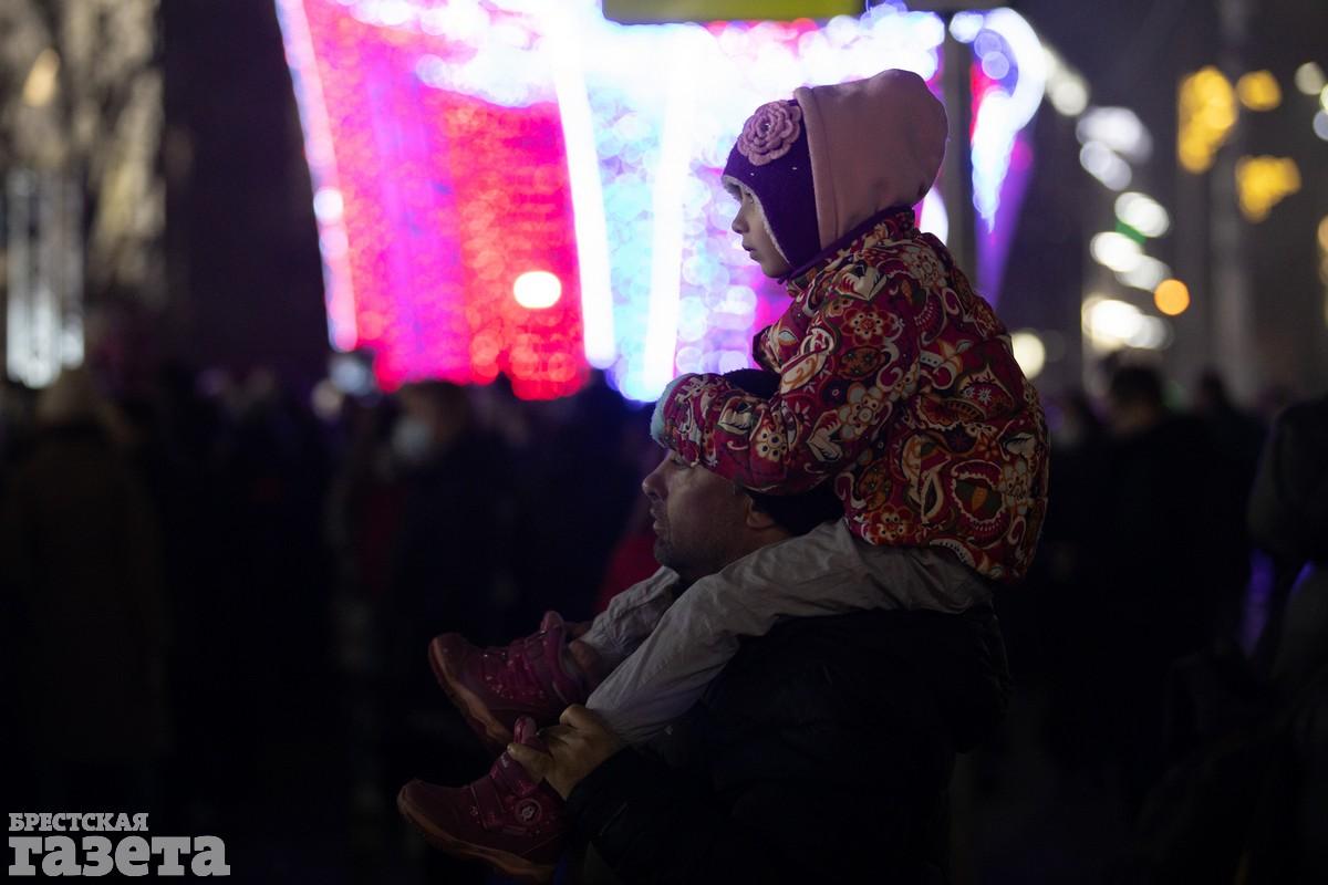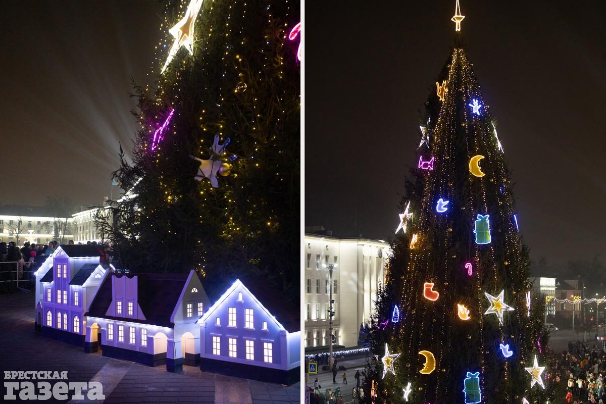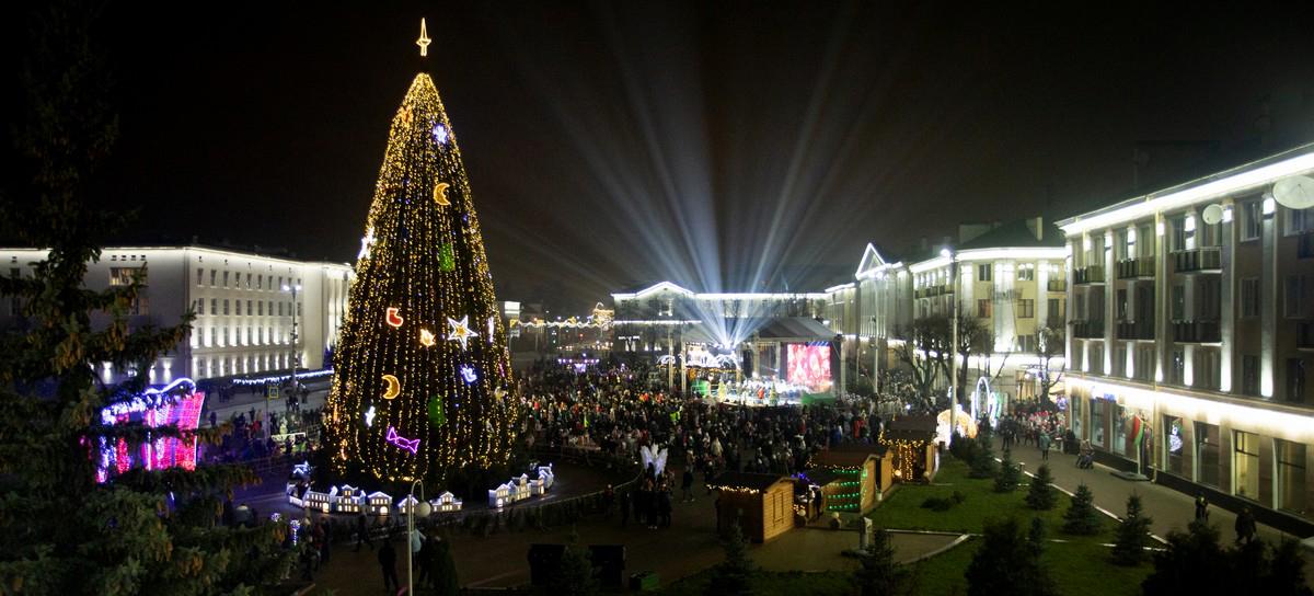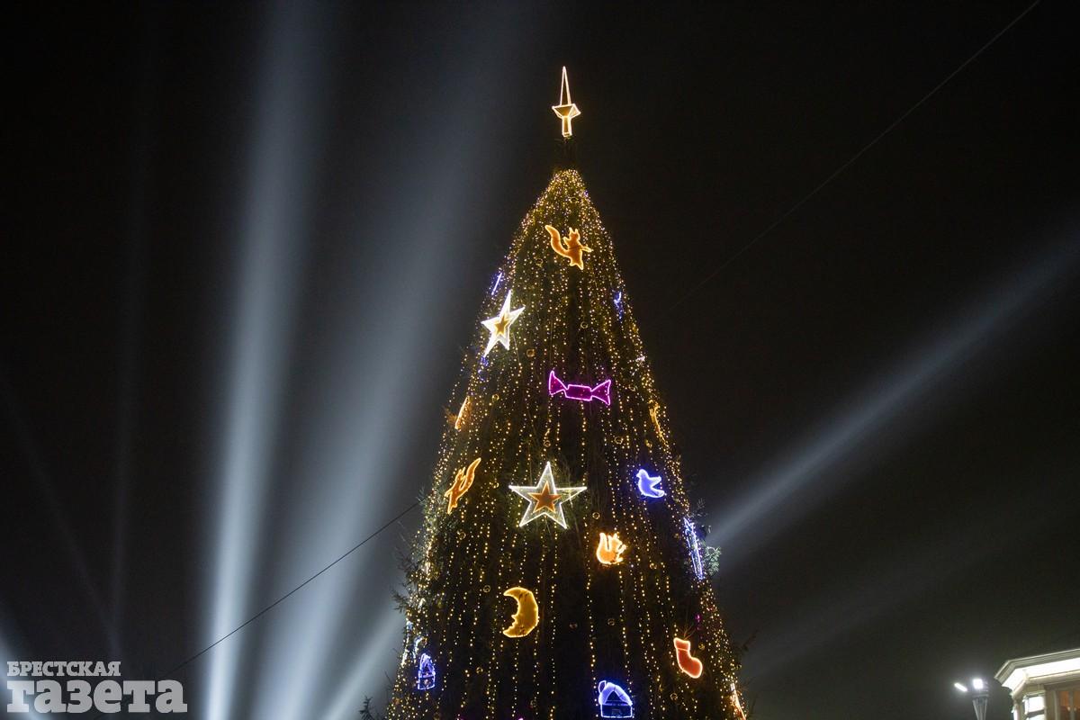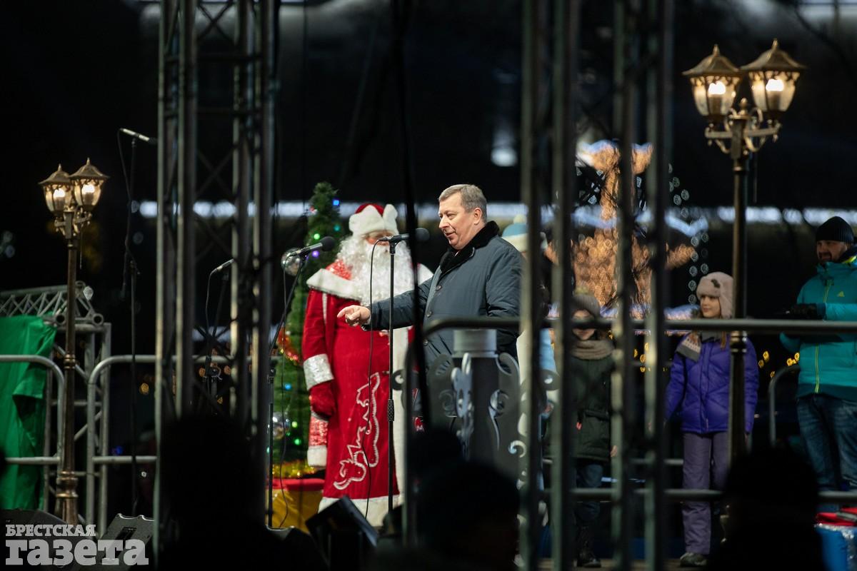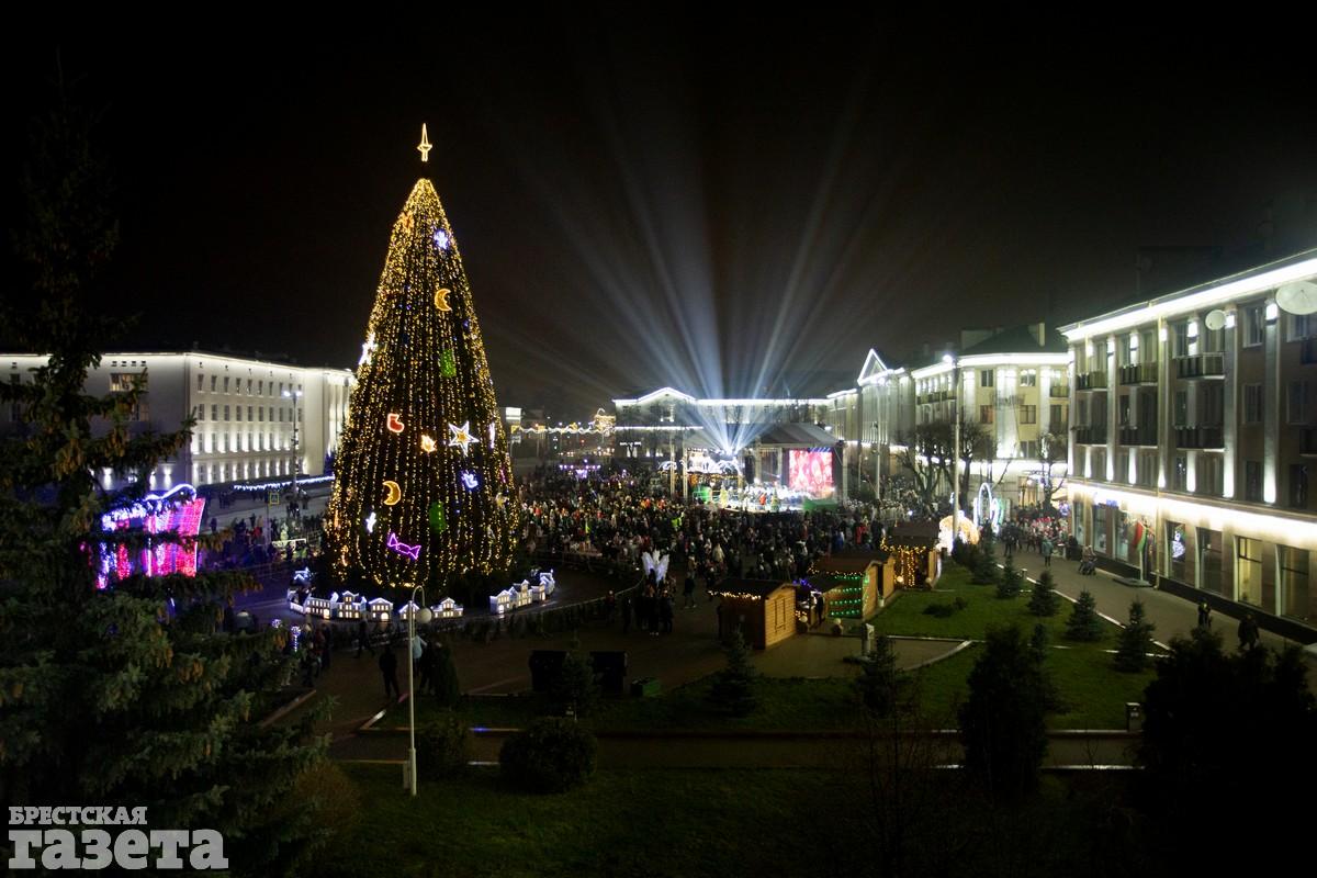 В Бресте вечером в пятницу торжественно зажгли главную елку города. Как и всегда, массовое мероприятие в честь этого события прошло на площади Ленина.