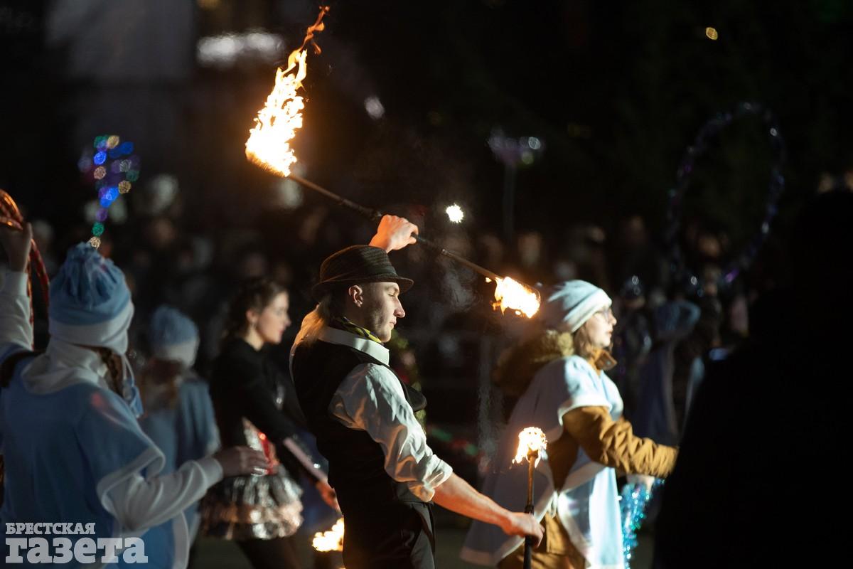 Перед открытием пришедших на праздник развлекал своей музыкой Брестский духовой оркестр. В 18.00 началось театрализованное новогоднее представление. В нем приняли участие вокальные и танцевальные коллективы, театр огня, цирковые артисты, а также сказочные персонажи.
