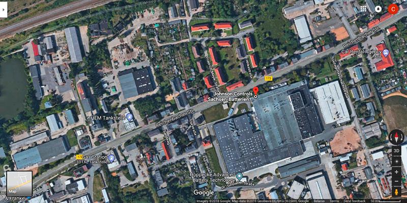 Германия, завод Johnson Controls в г. Цвиккау. Жилые дома расположены через дорогу (менее 100 м)
