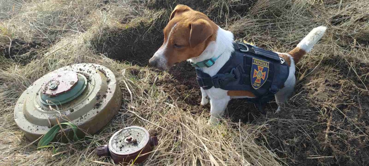 Пес Патрон помогает спасателям разминировать Черниговскую область