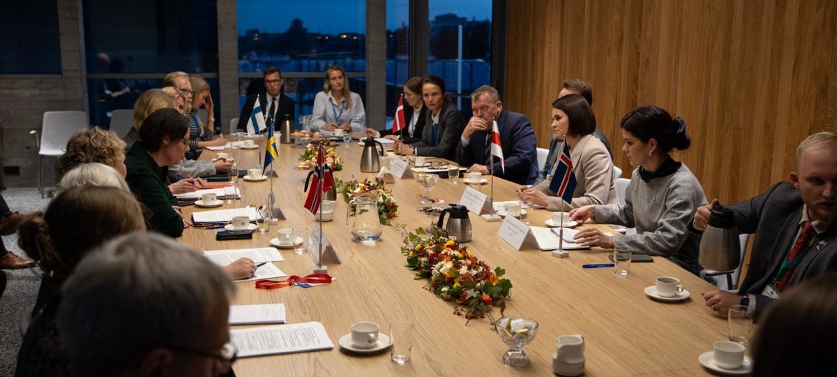 Светлана Тихановская встретилась в Исландии с министрами иностранных дел стран Северного совета для обсуждения поддержки политзаключенных, легализации беларусов, иска Литвы в Международный уголовный суд, а также помощи гражданскому обществу и СМИ.