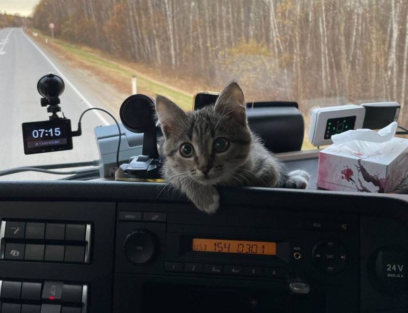 В рейсе с пушистым напарником мужчина провел 50 дней, откатав более 20 тысяч километров. На остановках Виталий выводил котенка на прогулки. Соня любила поиграть в траве и «поохотиться», но ни разу никуда не сбегала. Наоборот, пристально следила за каждым шагом своего хозяина.