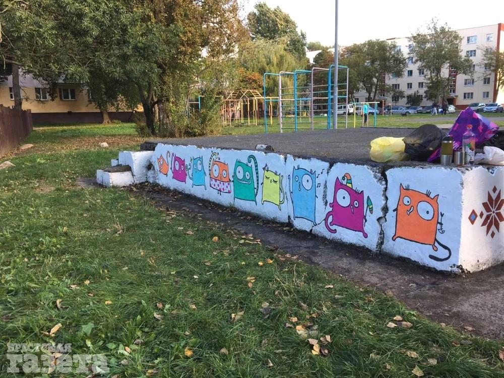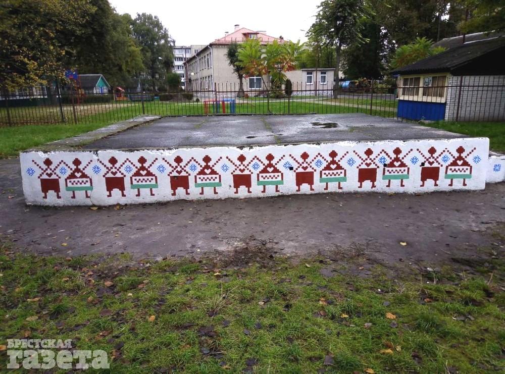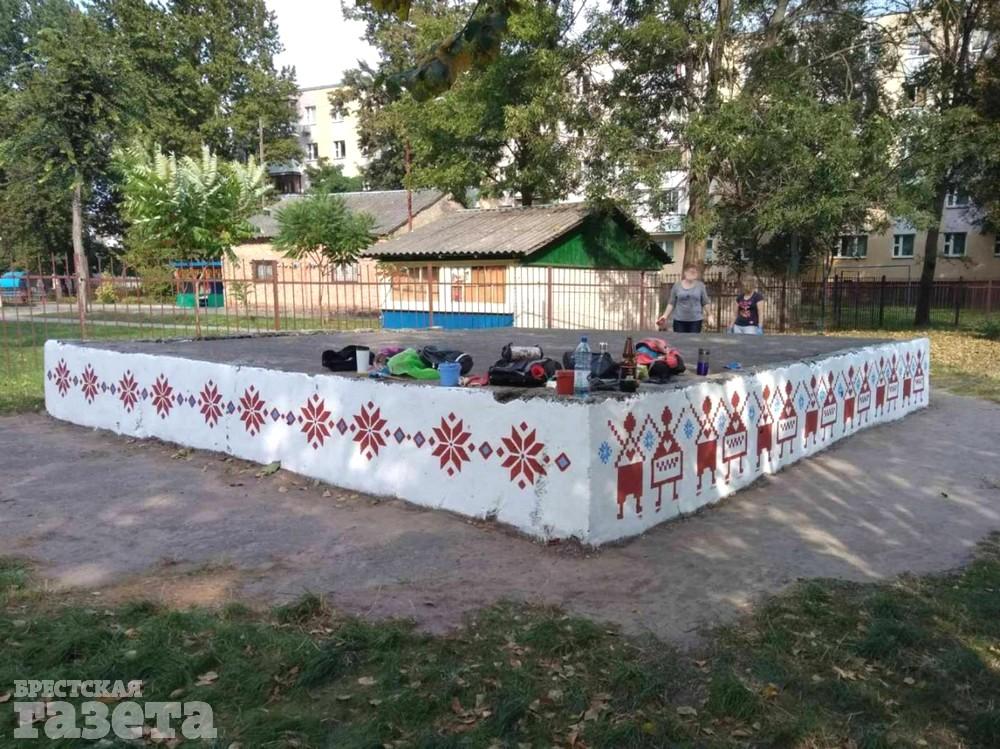 В Бресте в одном из дворов на Набережной Ф. Скорины уже больше месяца длится противостояние жильцов и эксплуатационной службы. Объектом этого противостояния стал рисунок на цоколе сценической площадки, находящейся на придомовой территории.