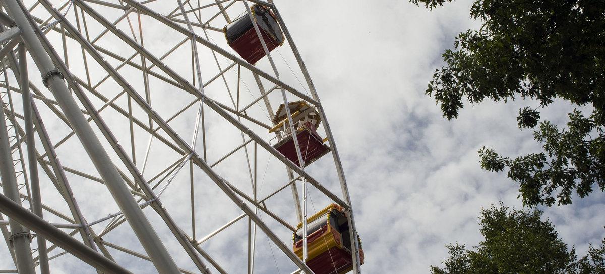 Мы отправились кататься на колесе обозрения в среду 5 июля. Пришли к 11.00 — именно с этого времени начинают работать аттракционы в парке. Но оказалось, что все не так просто. Колесо уже крутилось, но первых пассажиров обещали запустить не раньше 12.00. Пока же серьезные дядечки, дымящие сигаретами, проверяли иллюминацию аттракциона. На вопрос, нельзя ли было сделать это позже, нам ответили — нет, тестированием занимается человек из Москвы, который скоро уедет.