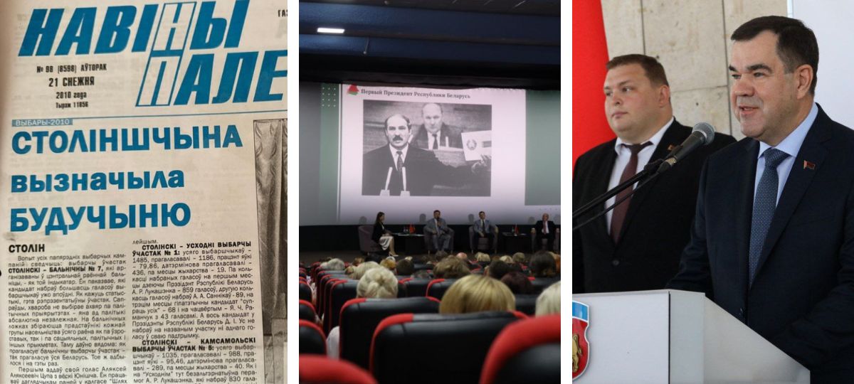 Чего не скажешь о столинских «Навiнах Палесся». Редактор газеты Елена Климушко нашла подшивки за те годы, когда в стране проходили президентские выборы, — начиная с 1994 года. У пропагандистки получилась настоящая хвалебная ода Лукашенко. То она писала, что он «шаг за шагом вытягивал страну из нищеты и разгула бандитизма», то цитировала ветерана ВОВ, который называл Лукашенко «непоседой, который всю страну объездил, везде беседовал с людьми, во все вникал, советовал, требовал, наводил порядок».