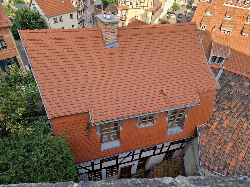 Вид на весь Кведлинбург открывается с Замковой горы, туда тоже стоит подняться. Осмотрев город, можете сами решить, какие дома стоит рассмотреть поближе. Две башни на замковой горе, которые видны практически из любой точки города, принадлежат романской церкви Святого Серватия. Первая часовня на месте церкви была возведена в VIII веке.