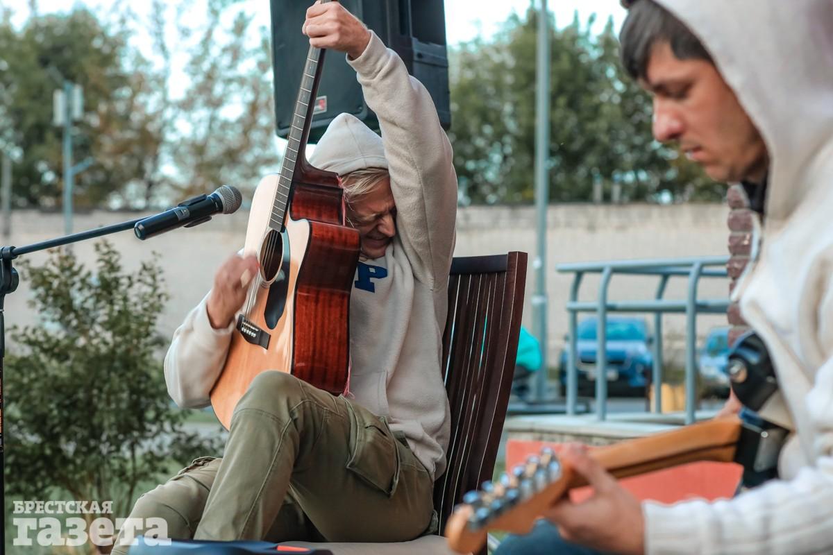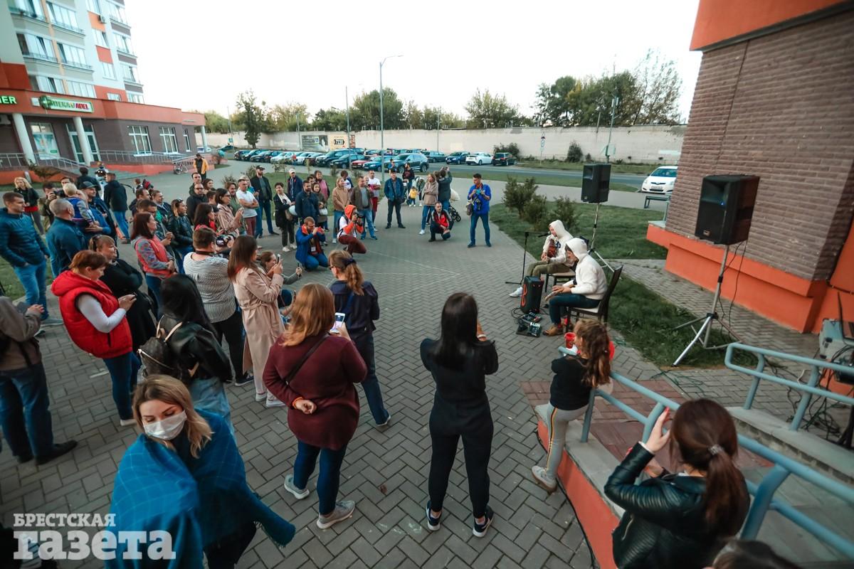 Во дворе на Гоголя собралось около сотни взрослых и детей. Музыкант объявил, что дворовой акустический концерт пройдет под названием «Пока не в изоляторе».