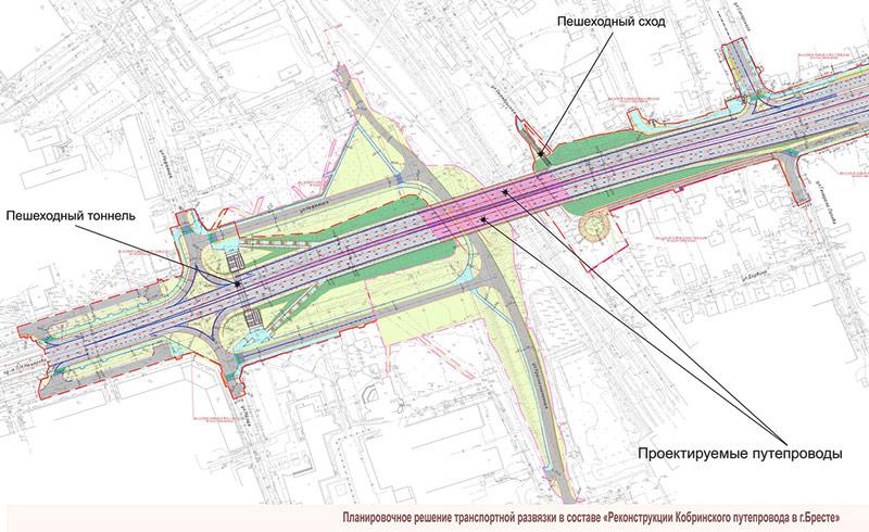 Проектом реконструкции путепровода были определены подготовительный период и две очереди строительства. Подготовительные работы предполагали перенос множества проходивших здесь коммуникаций, таких как теплотрассы, сети связи, водопровод, канализация. Эти работы на объекте велись специализированными предприятиями «Дорводоканал», «Стройгаз», «Брестжилстрой» и др. Все коммуникации были перебазированы, как и намечалось, до начала отопительного периода.