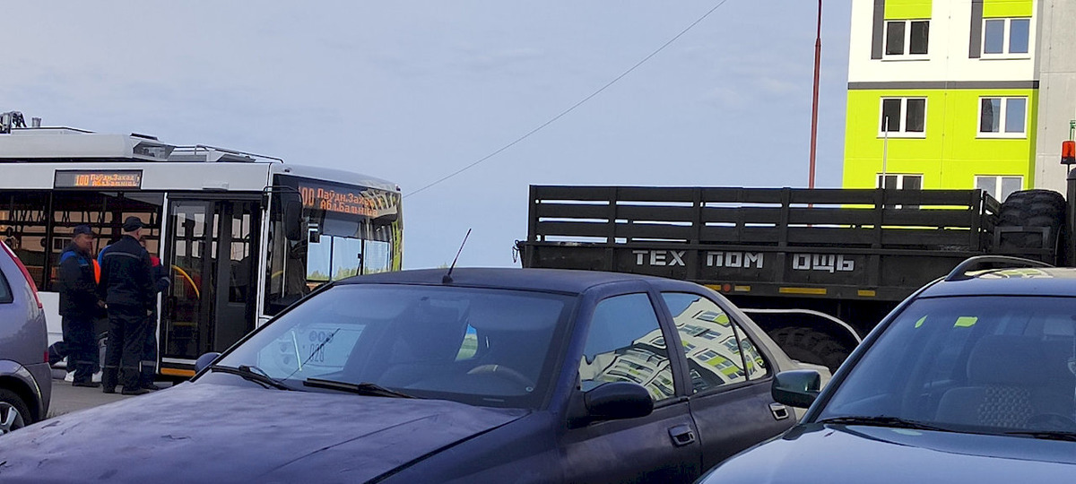 Несколько новых троллейбусов увозили с маршрута №100 тягачами. Неужели они сломались в первый же день работы?