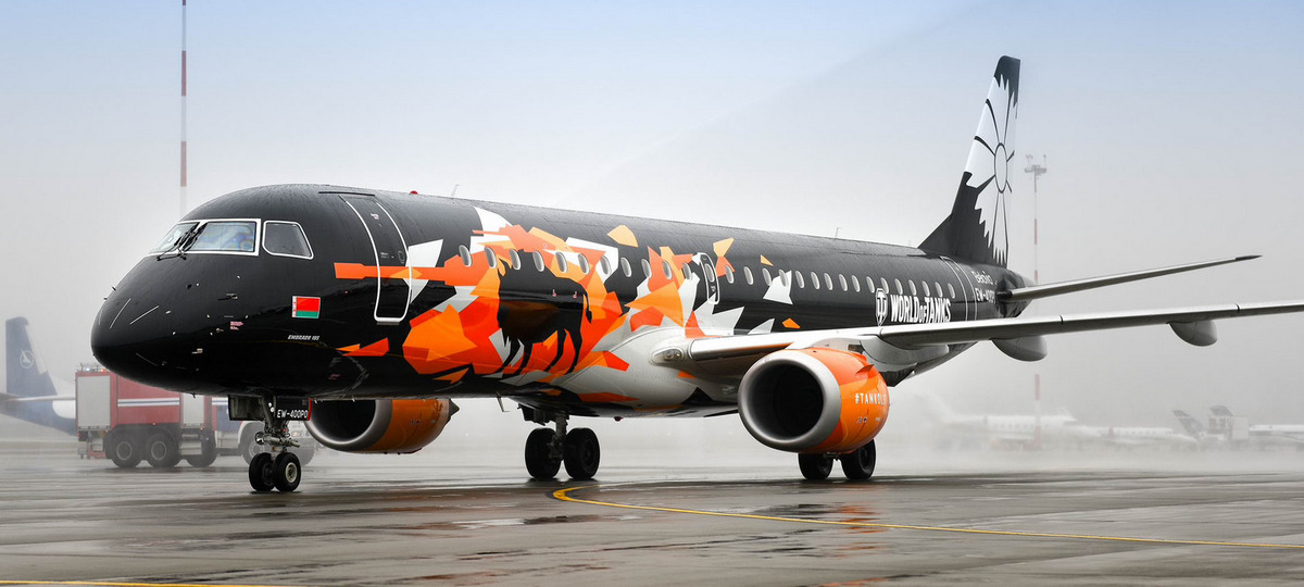 Belavia обзавелась «танколетами» во времена своего расцвета и расцвета беларуской IT-индустрии. Основной идеей брендированной ливреи было показать, что игра, известная во всем мире, — родом из Беларуси.