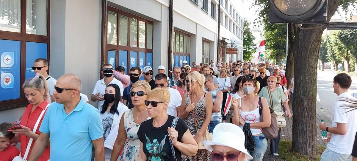В это воскресенье, 30 августа, брестчане пошли по новому маршруту. На этот раз бело-красно-белая колонна на перекрестке улицы Московской возле «Беларусбанка» повернула налево — на Пионерскую. Дойдя до перекрестка с Пушкинской, они свернули на эту улицу и вернулись в центр города к ЦУМу.