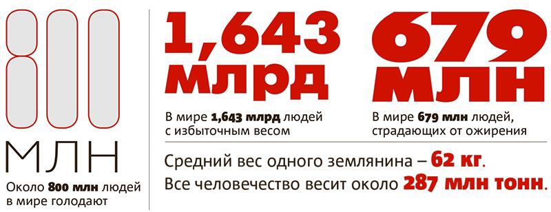 При этом 15 млн тонн приходится на полных людей и 3,5 млн тонн — на страдающих ожирением.