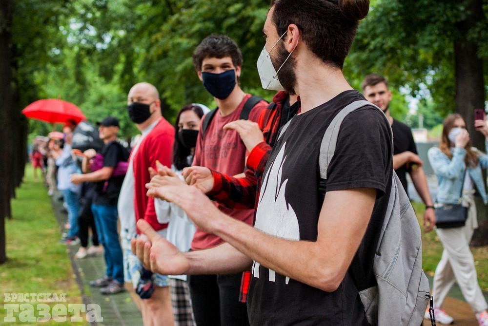 Цепочка солидарности сначала построилась на пешеходной улице Советской, где проходили пикеты по сбору подписей за выдвижение альтернативных кандидатов. Затем участники протеста решили выйти на проспект Машерова, где опять выстроились в цепь солидарности. Людей становилось все больше и больше, и эта цепь растянулась от гостиницы «Интурист» до Кобринского моста.