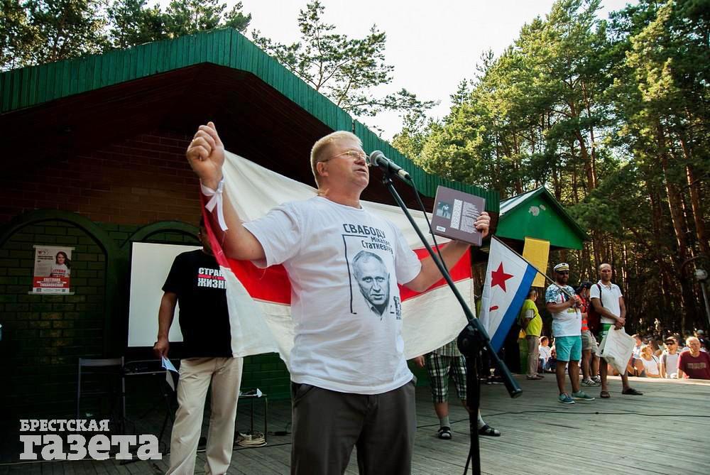 Известный в Бресте активист, ветеран-афганец Александр Сахарук, выступил в майке с портретом Николая Статкевича.