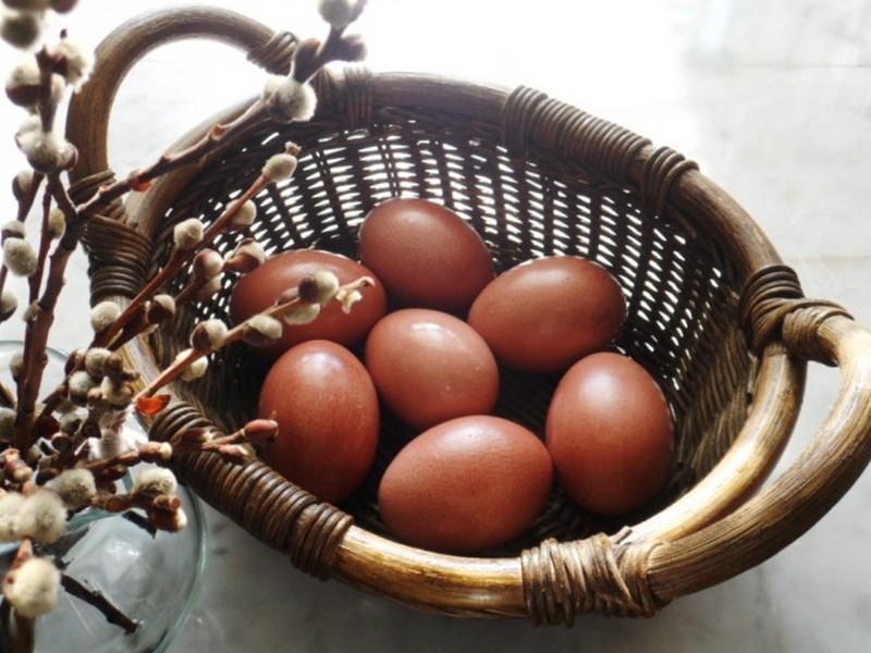 Наши бабушки красили яйца в луковой шелухе. Это до сих пор актуально и популярно. В результате можно получить красные яйца, а также желтого, коричневого цвета или их оттенков.