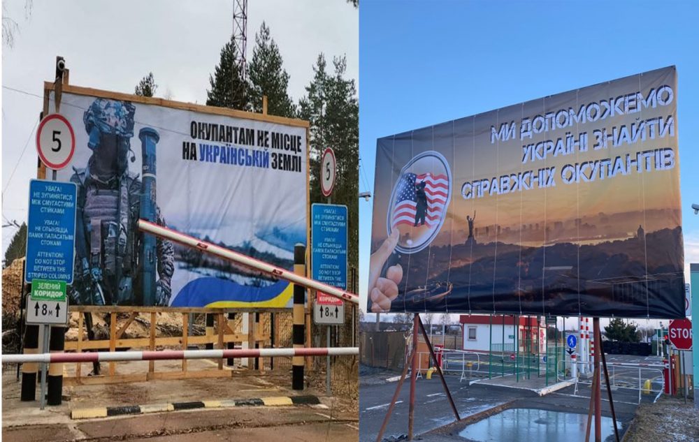 12 марта стало известно, что представители режима Лукашенко произвели пропагандистский «выстрел в ответ», разместив в тех же пограничных переходах в сторону Украины билборды с надписью на украинском языке «Ми допоможемо Україні знайти справжніх окупантів» [Перевод: «Мы поможем Украине найти настоящих оккупантов»].
