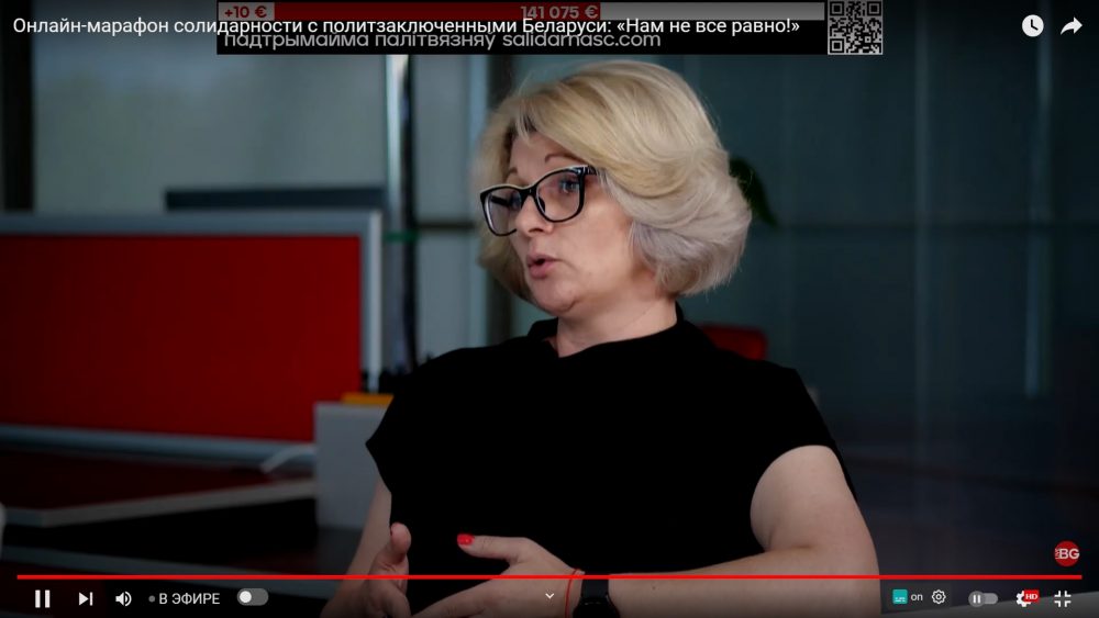 К трансляции присоединился портал Zerkalo.io. Их команда показала интервью с экс-политзаключенной, пенсионеркой из беларуского Гродно – Александрой Ханевич.