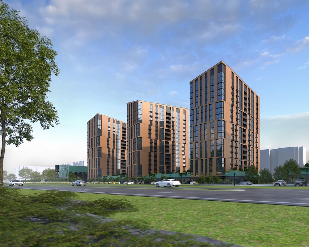 Совсем скоро здесь появятся два объекта. Они будут реализовываться по принципу «закрытых кварталов» без доступа авто и посторонних лиц. Речь о закрытой территории, где будут жить только жители данных дворов. Дома будут по 17 этажей, а на первом — защитный экран, который будет снижать шум с шоссе. Для авто будут построены паркинги. Планировки будут европейскими. В основном — евродвушки, евротрешки. Площадь квартир — от 49 кв. м до 85 кв. м.