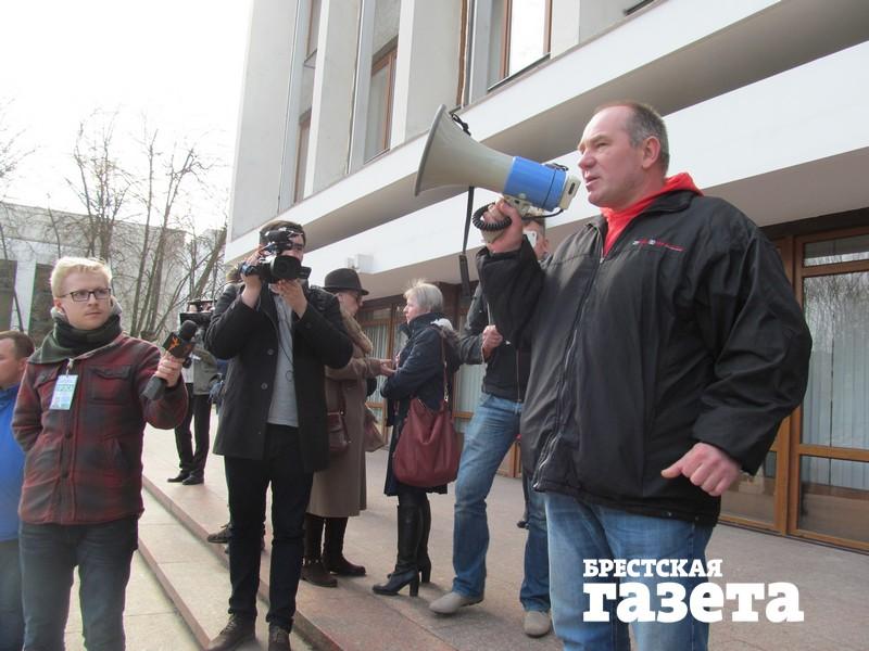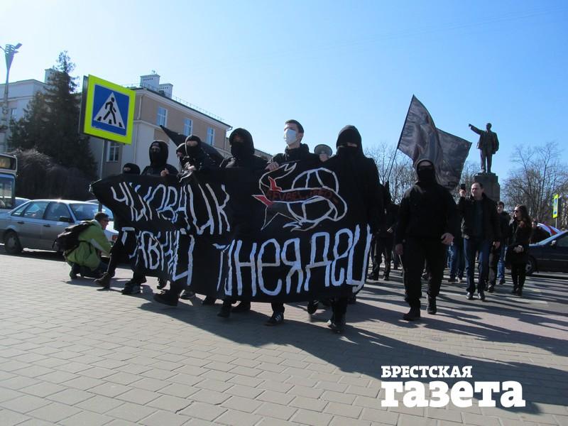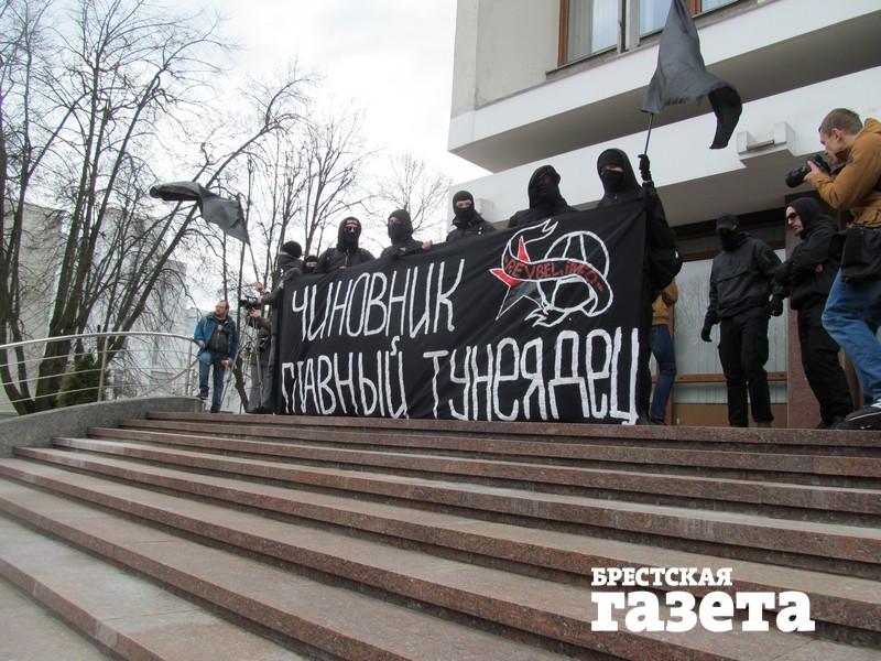 Организаторы: березовский активист Александр Кабанов. Когда протестующие разделились (часть из них пошла на встречу с председателем горисполкома Александром Рогачуком, а остальные остались на улице), акция начала затухать. Тогда вперед вышли молодые люди в черном — анархисты. Они фактически и возглавили мероприятие и сделали его таким многочисленным.