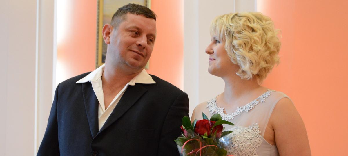 Сергей Панков и Виктория Рожинская расписались 4 октября. Невеста сейчас не работает, потому как находится в отпуске по уходу за ребенком: у пары два месяца назад родилась дочь. Жених — водитель городского маршрутного такси. Молодожены даже в загс приехали на «рабочей лошадке» Сергея — маршрутке под №5, эффектно припарковав ее на стоянке у брестского «дворца бракосочетаний».