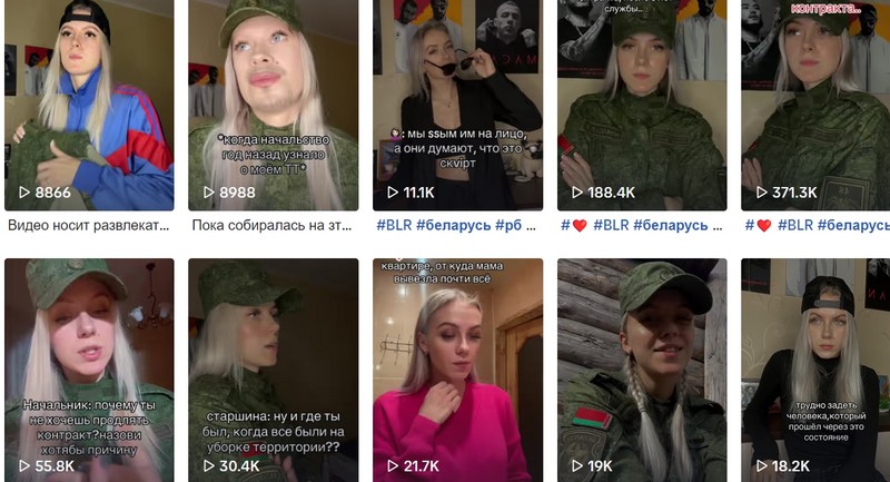 Полина не единственная блогерша в Беларуси, которая записывала видео в форме. Есть блогер voenkom.pro — полковник Руслан Шкодин, военный комиссар Витебской области, депутат Витебского областного Совета депутатов. Поклонников его специфического юмора хватает. Руслан имеет более 735 тысяч подписчиков.