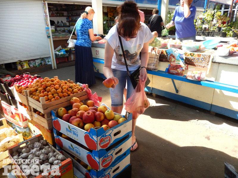 Были еще на рынке польские яблоки «голден» по 2 рубля за килограмм. Продавец Татьяна такую цену объяснила высокой закупочной ценой.