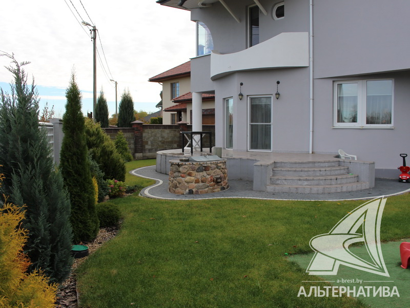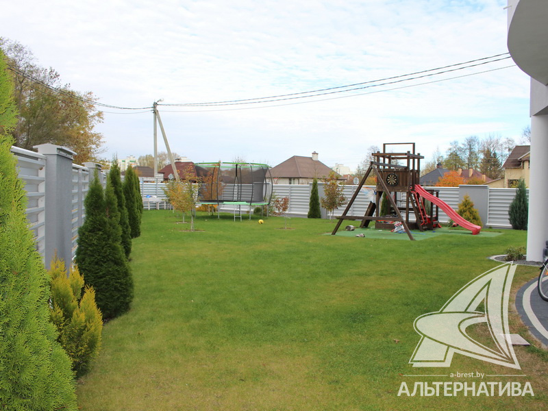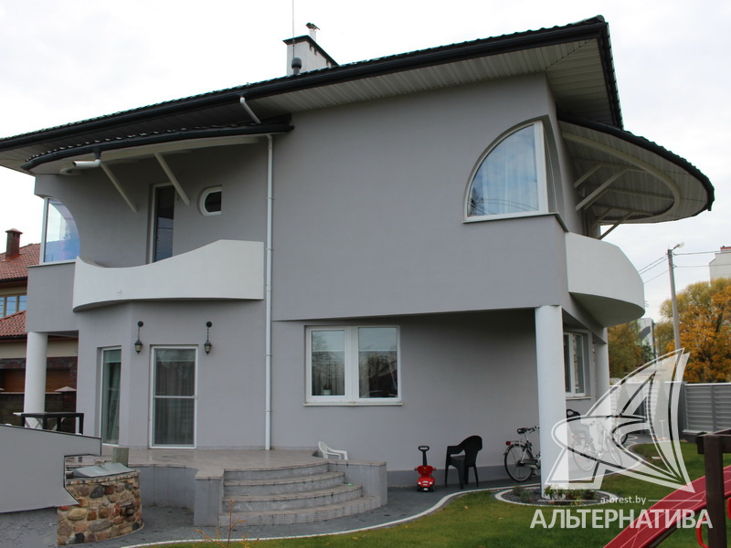 Материал стен – стружечная плита и железобетонные панели. Дом утеплен пенополистиролом, а фасад отделан штукатуркой «американка». Кровля выполнена из металлочерепицы, окна ПВХ. Общая площадь – 357,2 кв.м, а жилая 73,86 кв.м.