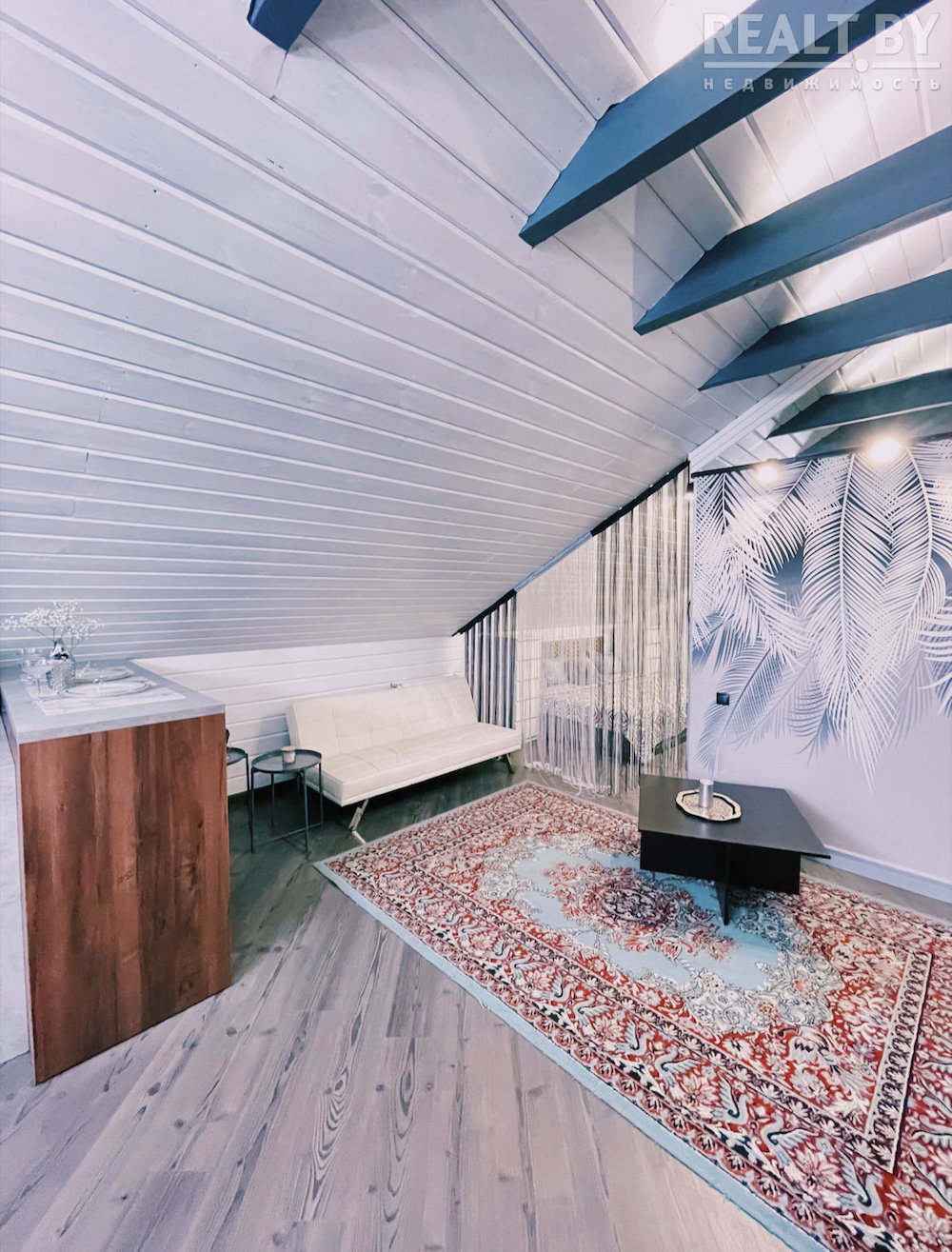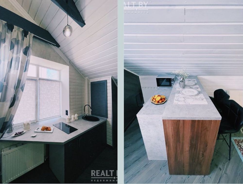 Необычная квартира находится в самом сердце города — на улице Советской. Речь о двухэтажном доме 1950 года постройки. Судя по фото, квартира сдается в мансардном этаже. В ней всего одна комната, разделенная на зоны занавеской. Таким образом в узком пространстве есть кухня, совмещенная с гостиной, спальня и санузел. Жилая зона занимает всего 36 м², а общая площадь квартиры — 42 м².