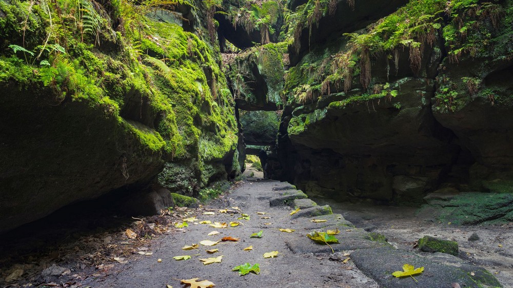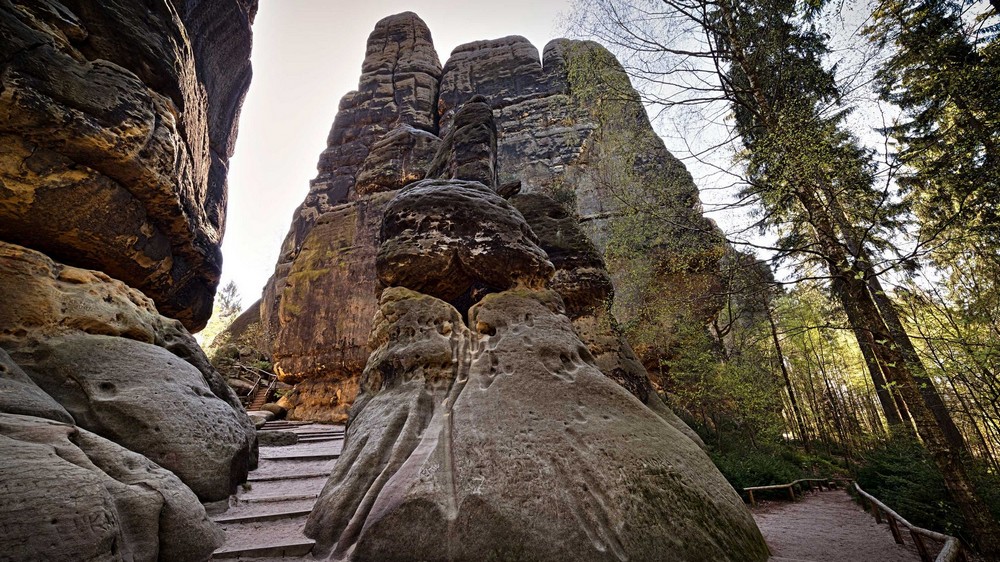 Продолжая движение по улице Альте Ломштрассе и вдоль опушки леса, вы встретите Квервег, Брюквальдвег и Шляйфгрунд. Это названия троп, которые ведут в тенистое прохладное ущелье Уттевальдер-Грунд с его легендарными скальными воротами. Именно здесь знаменитый художник-романтик Каспар Давид Фридрих провел в одиночестве целый день.