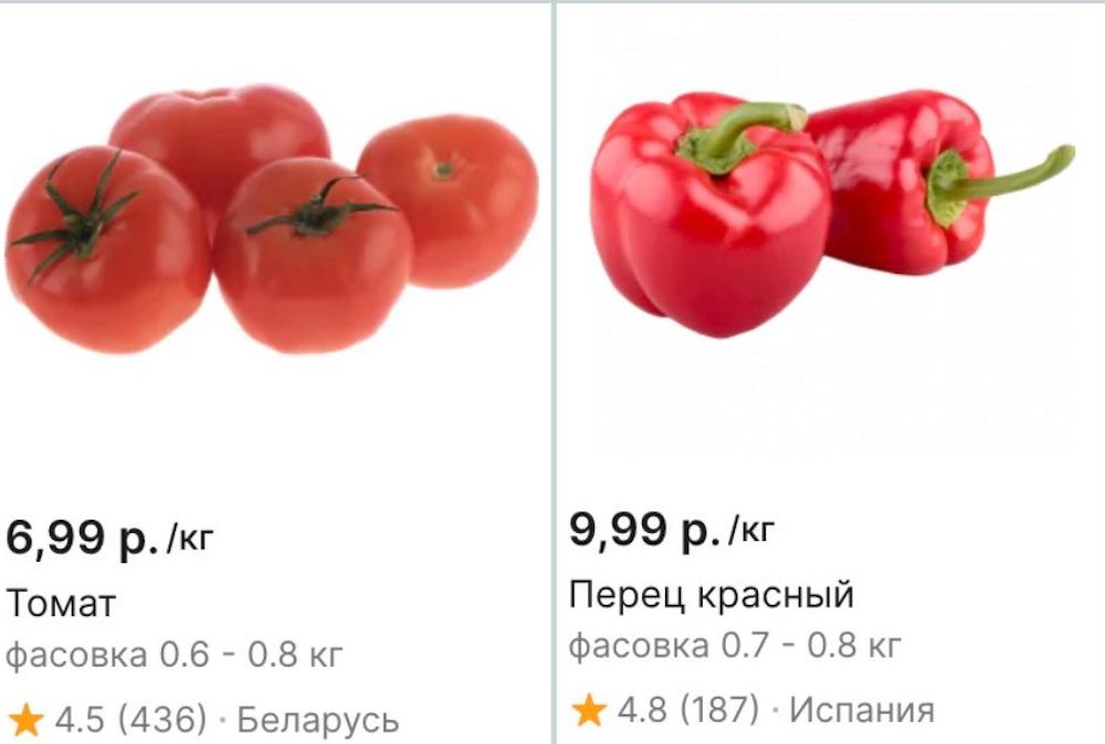 По данным Белстата, в сегменте «Продукты питания, напитки, табачные изделия» в октябре 2023 года по сравнению с предыдущим месяцем больше всего подорожали свежие томаты — на 66,3%. Также заметно прибавили в цене сладкий перец (+23,38%), свежие огурцы (+19,34%), и чеснок (+9,71%). В целом овощи в Беларуси подорожали за месяц на 25,13%.