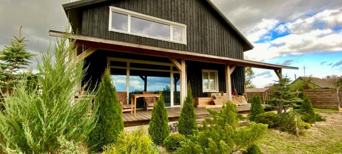 Необычный жилой дом находится в ближайшем пригороде Бреста — Тельмах. Он сразу привлекает внимание своим нетипичным видом: главный фасад отделан деревом или материалом, имитирующим его. Это уже придает +100 очков к уюту и делает здание визуально «теплее». Большие окна и терраса выглядят гармонично и гостеприимно. Продолговатое окно в мансарде придает дому ту самую непохожесть на другие. Как написано в объявлении, дом спланирован и построен из качественных материалов по индивидуальному проекту.