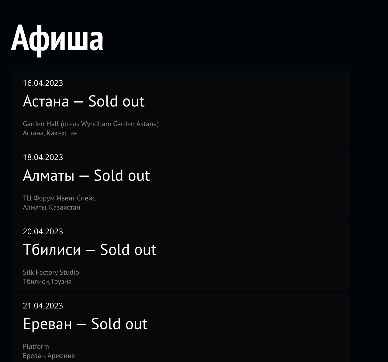 Хорошая новость и для поклонников группы «Земфира». С 9 октября по 3 ноября 2023 года коллектив отправится в большой европейский тур Borderline.