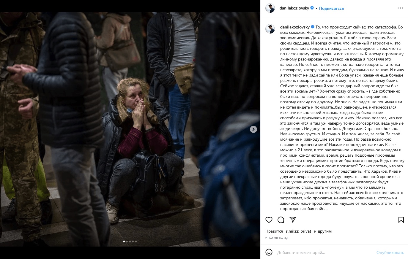 Читать далее: «Мои мама и бабушка – русские. Папа и дедушка – украинцы…» Российские и украинские звёзды шоу-бизнеса о войне