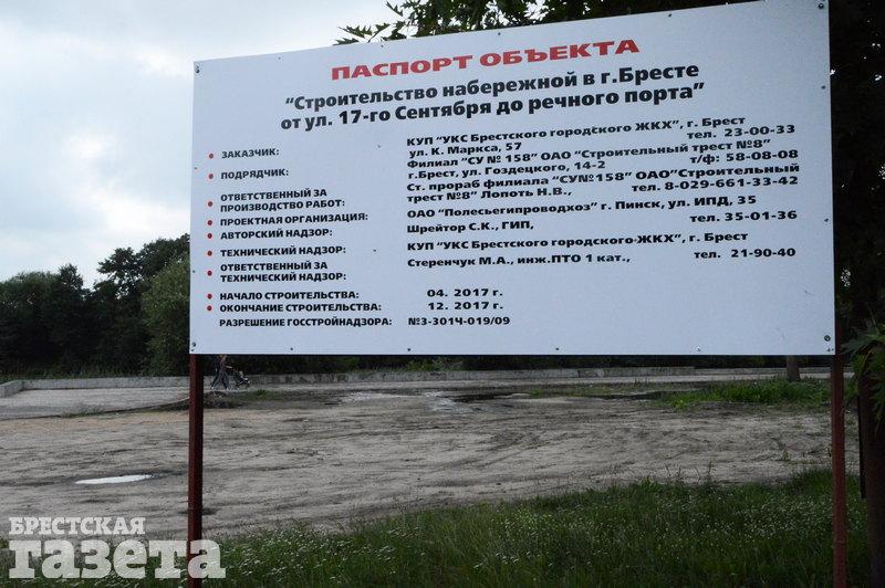 До окончания реконструкции брестской набережной осталось чуть меньше полутора лет. Подготовительные работы начались еще в августе 2014-го. На реализацию проекта было выделено 39 месяцев. Полностью обновленную прибрежную зону реки Мухавец собираются презентовать брестчанам и гостям города к концу 2018 года.