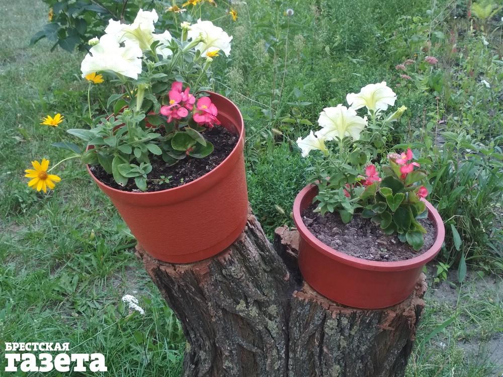 «Недалеко около дома лежало засохшее дерево. Люди его распилили. А мы сделали вот такую красоту. Это наши пеньки», — рассказывает о происхождении одной из композиций Елена.