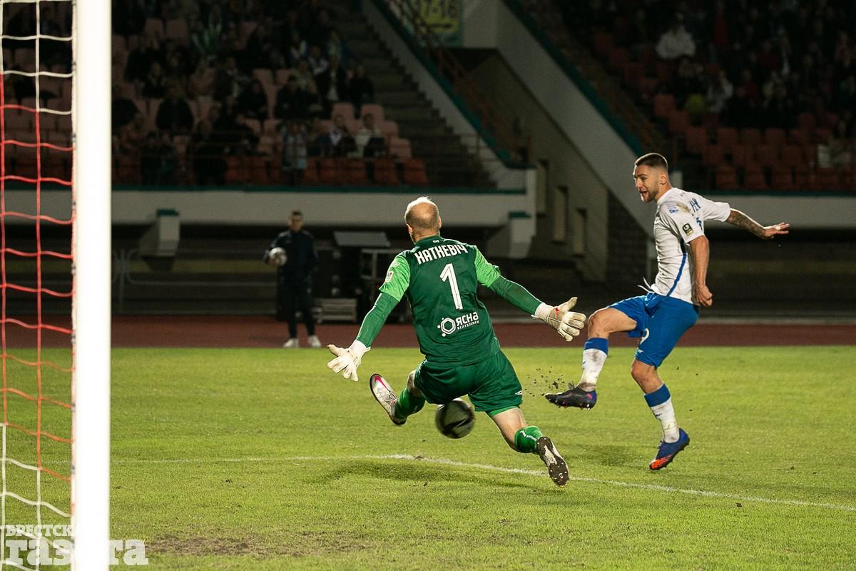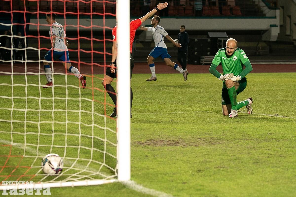 После перерыва игра была равной. Гости несколько раз проверили на прочность голкипера хозяев Романа Степанова. А на 71-й минуте брестчане сравняли счет: Станислав Беленький пробил с угла штрафной между ног голкиперу.