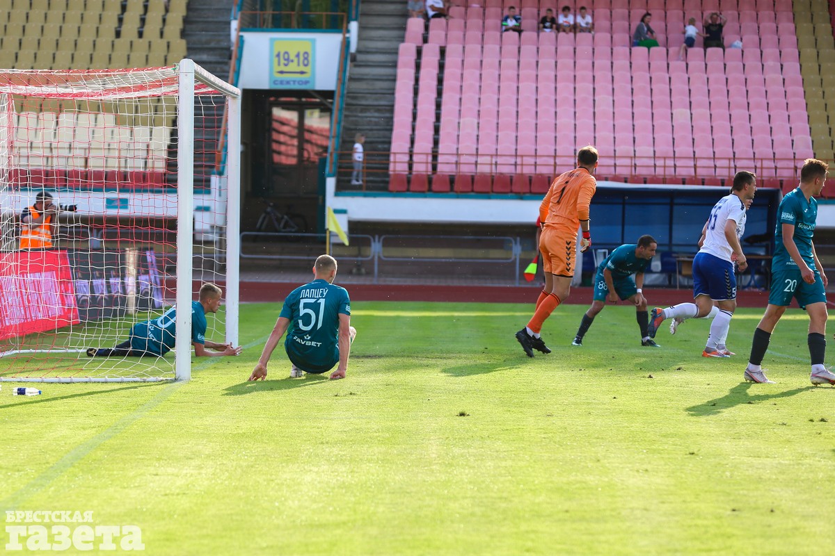 После этого «Рух» ненадолго пришел в себя и провел несколько атак, в которых отличиться мог Павел Савицкий. Затем гости снова прижали хозяев и дважды за пару минут пробили в штанги. В этих эпизодах брестчанам повезло. В итоге на перерыв команды ушли без забитых голов.